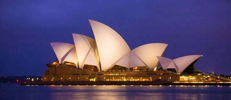 Which city is home to the sail-roofed Sydney Opera House?