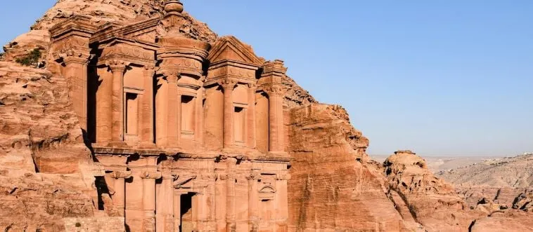 Which city leads to the rock-carved wonder of Petra?